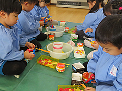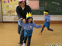 月の後半へ ■15日(木) 全学年:さくら・さくらんぼリズム遊び 発表会活動 ■14日(水) 1月生まれの皆さん お誕生日おめでとうございます! ■13日(火) 年長:縄跳び遊び 年少:壁面製作 ■9日(金) 年少:壁面製作 年中:楽器遊び 全学年:門松の説明をしました。 ■8日(木) 年長:卒園アルバム写真撮影 年少:壁面製作 全学年:英語 ■7日(水) 全学年:3学期始業式 年中:リズム遊び 全学年:キッズヨガ 昼食の様子