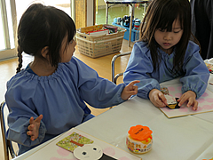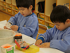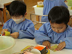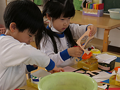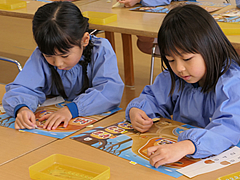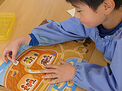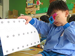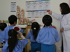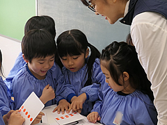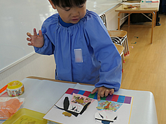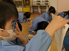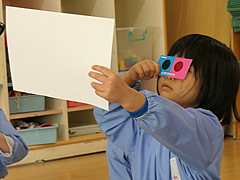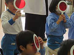 年長:学研 「かがくタイム」で、「色の不思議を楽しもう!」をしました。