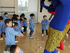 全学年:各学年ごとに豆まきをしました。