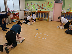 心肺蘇生法やAED等の救命講習を教職員と受講しました。