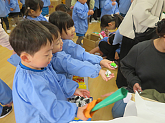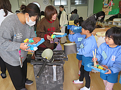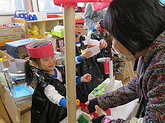 子ども達にお正月の風習を見せたいと、毎年門松を立てております。