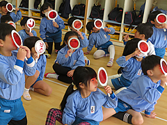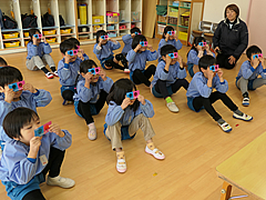 年長:学研 「かがくタイム」で、「色の不思議を楽しもう!」をしました。